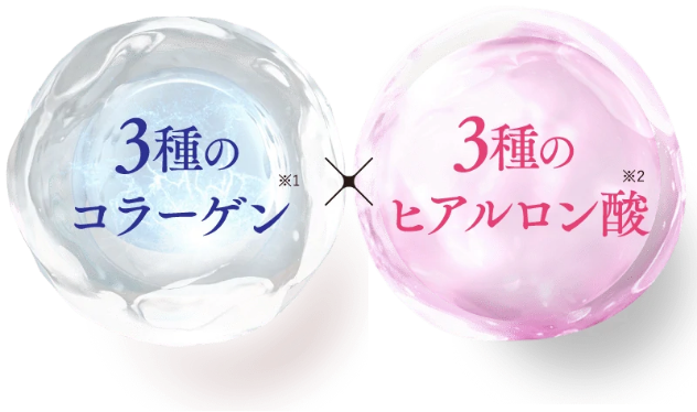 お肌を満たす贅沢な潤いの秘密は、3種のコラーゲンと3種のヒアルロン酸を配合しているから。この同時配合によって角質層の隅々まで水分を与えることで、肌のうるおいをキープします。